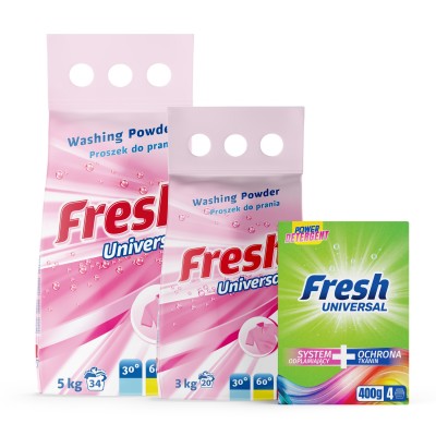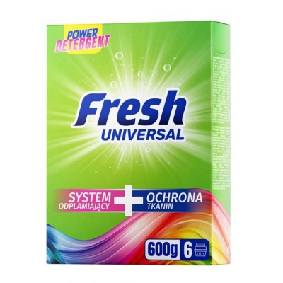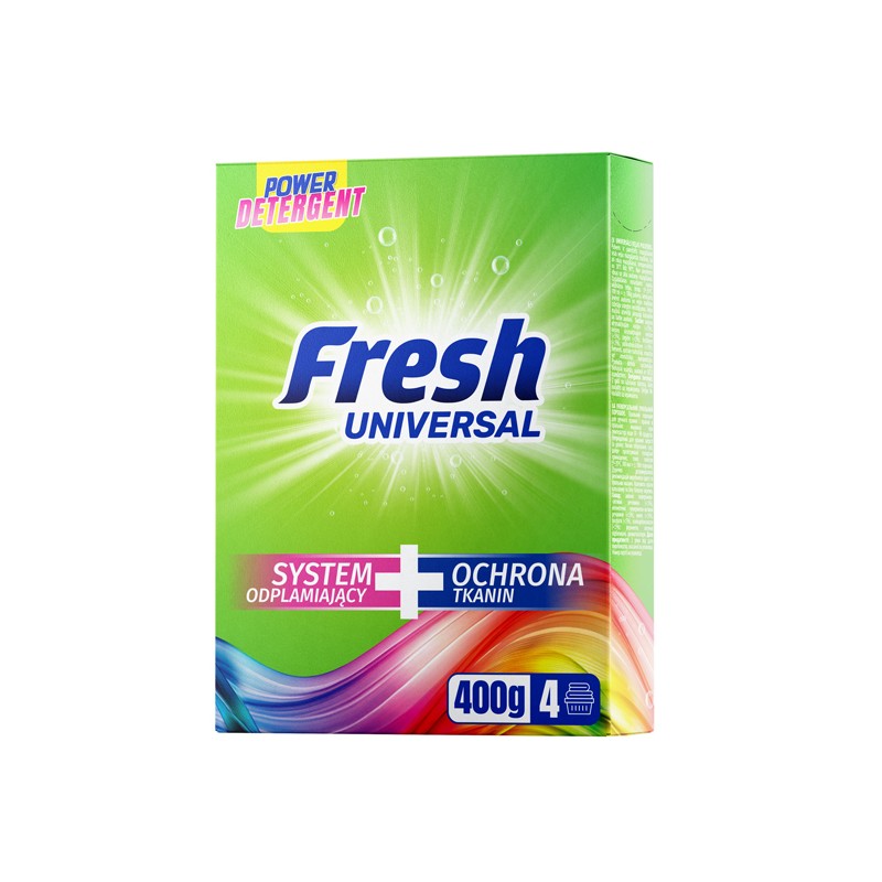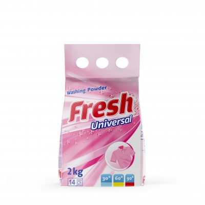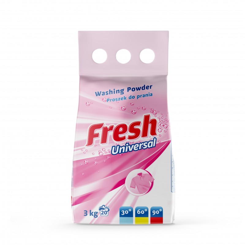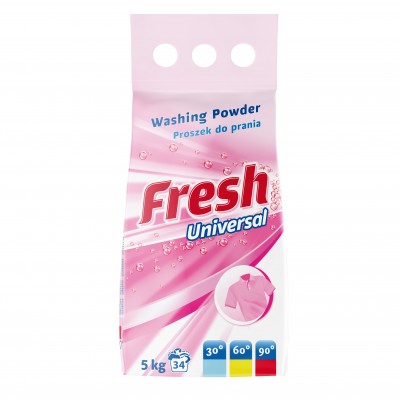 Univerzální prací prostředek Fresh pro barevné i bílé tkaniny pečuje o bavlnu, len a směsové vlákna při teplotách od 30 °C do 90 °C. Účinný v jakékoli pračce a pro ruční praní.