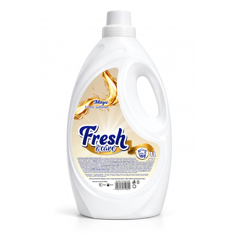 Fresh & Care to wyjątkowy płyn do płukania tkanin, który nadaje ubraniom niezwykłą miękkość oraz długotrwałą świeżość. Specjalnie opracowana formuła otula włókna materiału, dzięki czemu tkaniny stają się przyjemne w dotyku, łatwiejsze do prasowania i zachowują świeży zapach na dłużej. Płyn doskonale sprawdza się zarówno w pralkach automatycznych, jak i podczas prania ręcznego.